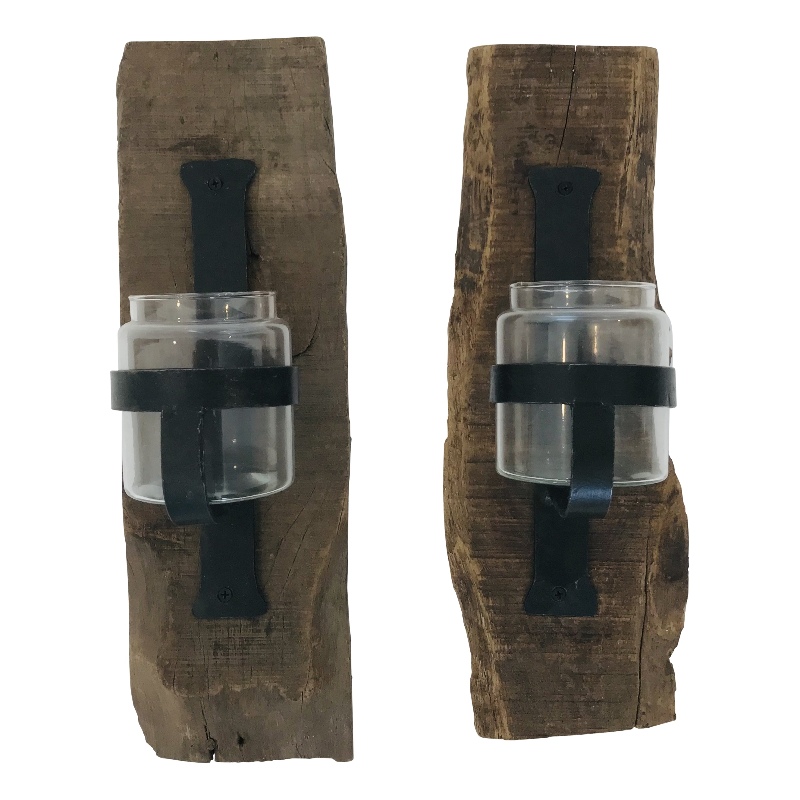 Wall candleholder glass on wood+/- 13 H45cm (5451)